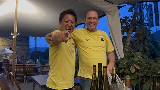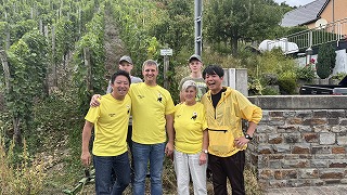 ![]() 早く目が覚めたので、一人でローゼン醸造所の裏の畑を登ってみました。この日は残念ながら霧は出ていませんでした。 最低気温13度ぐらいだったので、寒かったのですが、前日のアニさんの説明にあったように丘の下は暖かく、上に登るとかなり寒く感じました。太陽の光の照り返しで丘の下の方は土が熱を保つという話がつながった良い経験でした。 そのあとは次女と哲平さんと朝食。ゲストハウスのスタッフさんがベーコンエッグを作ってくれて次女感激。次女、❝ここに住みたいなあ❞と(笑)。 モーゼル川を見ながら優雅な朝食の時間を楽しみました。 10時にゲストハウスを後にしてベルンカステルの宿に荷物を置きに行くも、スタッフさんが誰もいなくて慌てる哲平さん。 どうやら前日の宿泊客がいなくて無人だったようで電話で来てくれることになりカフェで一休み。 無事にスーツケースを預けて、モーゼル川クルーズへ。ライン川よりも細いモーゼル川ですが、結構大きなクルーズ船でした。 これまた綺麗なブドウ畑が続くクルーズでビールが進みました。 1時間のクルーズを終えベルンカステルに戻ってきたあとは、山の上にある古城に登ってみようということになったのですが、これがかなり急な坂道でクルーズ船で飲んだビールが全部汗になって流れ出た感じです。 でも登り切って古城の上から見るモーゼル川と特級畑の景色は本当に綺麗で最高でした。 15時にこの日の訪問先であるケステン村にあるバストゥゲン家のトーマスさんが迎えに来てくれ、お母さんのマリアンヌさんと双子の息子さんたちともモーゼル川沿いのテラスでワインを飲みながら遅めのランチ。 そのあとは写真の後ろにある急斜面のリースリングの選定作業を次女と哲平さんとお手伝い。このブドウがワインになって2026年6月頃に入荷します。 人口300人のケステン村を車で案内してもらい、ホテルまで送ってもらいました。 そしてローゼンさんのワインが飲めるという昨日とは違うレストランで晩御飯。 素敵なサービスをしてくれるマダムがいて美味しく楽しい時間でしたが、お目当てのローゼンさんのワインがなく、赤ワインのシラーを飲みました。 そしてレストランを出たあと宿の隣の昨日行ったレストランでさらに飲み直し。 よく食べてよく飲んだ厳しいドイツ研修4日目終了。 9月26日金曜日 73.5s 19.5% 昨日はガリガリクラブ最終測定日で飲みすぎて走れず。 |