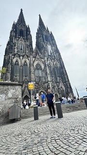 ![]() やや二日酔いで目覚め、シャワーを浴びてスッキリ。 ヨハンさんと朝食を取り、バッハラッハ駅へ送ってもらう。 バッハラッハ駅で今回のアテンドをしてくれたヘレンベルガーホーフの哲平さんともお別れで、ホームで次女から哲平さんにワイン魂Tシャツの贈呈式。 哲平さんはフランクフルト方面へ。 哲平さん6日間ありがとうございました! 僕と次女は8:50発ケルン行き乗り11:10ケルン駅到着。 いきなり大聖堂が現れ二人ともそのスケールの大きさに大感激! まずはホテルにチェックインということで、予約したホテルはどこかなあと歩いていたら大聖堂のすぐそばで、これまたビックリ。 アーリーチェックインで部屋に荷物を置いて、ケルン観光へレッツゴー。 ケルン大聖堂を見学して、チョコレート博物館へ。 またもやゲリラ豪雨に会うも、間一髪で入場。実際に作っているところを見れるのですが、次女がその工程をジーっと見ていたら、作っていた女性がドアを開け、ペンギンの大きなチョコをくれるという奇跡に次女大満足。 そのあとはホーエンツォレルン橋という恋人たちが南京錠をかけて愛を誓ういう橋を渡り、反対側からライン川、ホーエンツォレルン橋、ケルン大聖堂の入ったベストアングルの写真をパチリ。 ホテルに戻って、一休みした時にスーツケースを開けたら、歯磨き粉がたくさん出ていて。僕のジャケットやカーデガンにべったりとついているというハプニング。 スーツケースが開かないように押さえた時にはみ出たと思われます・・・。 近くで美味しいソーゼージの店情報があったので17:30の早い時間から夕食へ。ここからは次女が英語とドイツ語を使い注文。外で食べるケルッシュというビールとソーセージ美味しかったです。 ふー。厳しいドイツ研修6日目も終了。 9月30日火曜日 74.0s 19.5% 朝の仕事が忙しく、走れず。 明日からは気持ちを切り替えて朝ラン頑張ろう! |