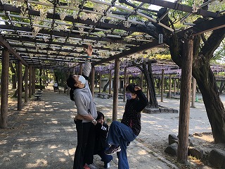 働き方改革に反して、日曜日も祝日も休まず働いた4月。にしても、ワインスクール、ワインイベント、もぐもぐワインクラブ、スタスタのお片付けコースがないとこんなに体か楽だと知った4月でもありました。 今朝は18:30起床。ぶーちゃんの散歩。 7:00から家族で名城公園の散歩に出かけました。 名古屋城横の藤棚もきれいで今週末から来週が見頃な感じです。 名城公園の中のチューリップも満開でした。 久しぶりに家族4人で歩いた名城公園は懐かしく、昔話に花が咲いた素敵な朝でした。 4月29日水曜日 72.5s 今週のジャンプ・鬼滅の刃のイメージで、藤に手を伸ばす炭治郎役の妻。 その足にしがみつく無残役の長女。 そしてカマキリ拳法のような次女は・・・誰の役なんだろう・・。 (2020.4.29[Wed])